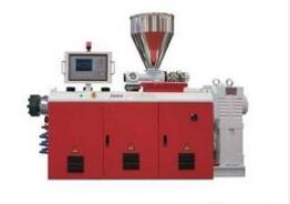 锥形双螺杆挤出机是一种高效的混炼、挤出设备。该机具有剪切速率小,物料不易分解,塑化混炼均匀,质量稳定,产量高,适用范围广,使用寿命长等特点。搭配各种规格模具和辅机生产线,就可以直接将PVC粉料制成管材、板材、异型材等不同截面的塑料制品。